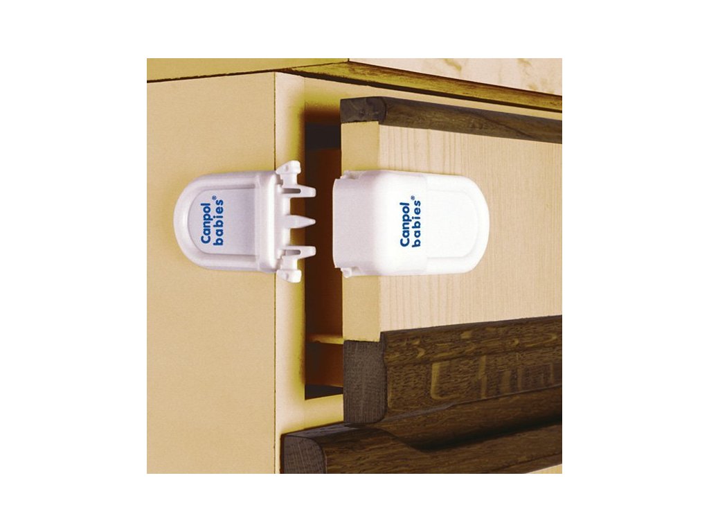 Chráni šuplíky pred nežiaducim otvorením dieťaťom. Obsahuje samolepiace páský, nevyžaduje žiadnu dodatočnú montáž. Diel uzáveru so zúbkami nalepte na pevnú časť skrinky, hladký diel na pohyblivú časť šuplíku (viď obrázok). Pre otvorenie šuplíka súčasne stlačte oba dva zúbky a otvorte šuplík. Uzáver je vhodný pre všetky typy šuplíkov.
