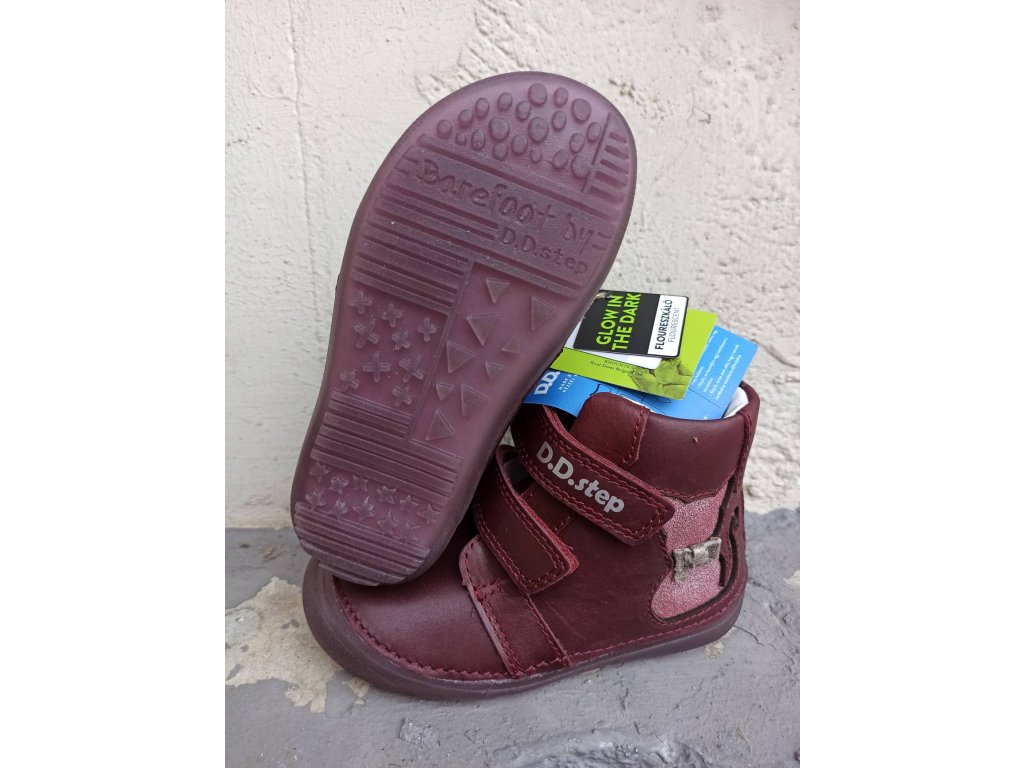 D.D.STEP kožené barefoot topánky 063 - dark pink
