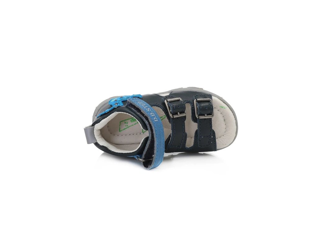 Pohodlné kožené sandále s koženou tvarovanou stielkou. Ortopedická klenba podporuje zdravý vývoj rastúcej detskej nožičky. Protinárazový tlmič je navrhnutý tak, aby pri chôdzi a behu dieťaťa tlmil nárazy na detskú pätu. Podrážka je protišmyková z kvalitnej prírodnej gumy.