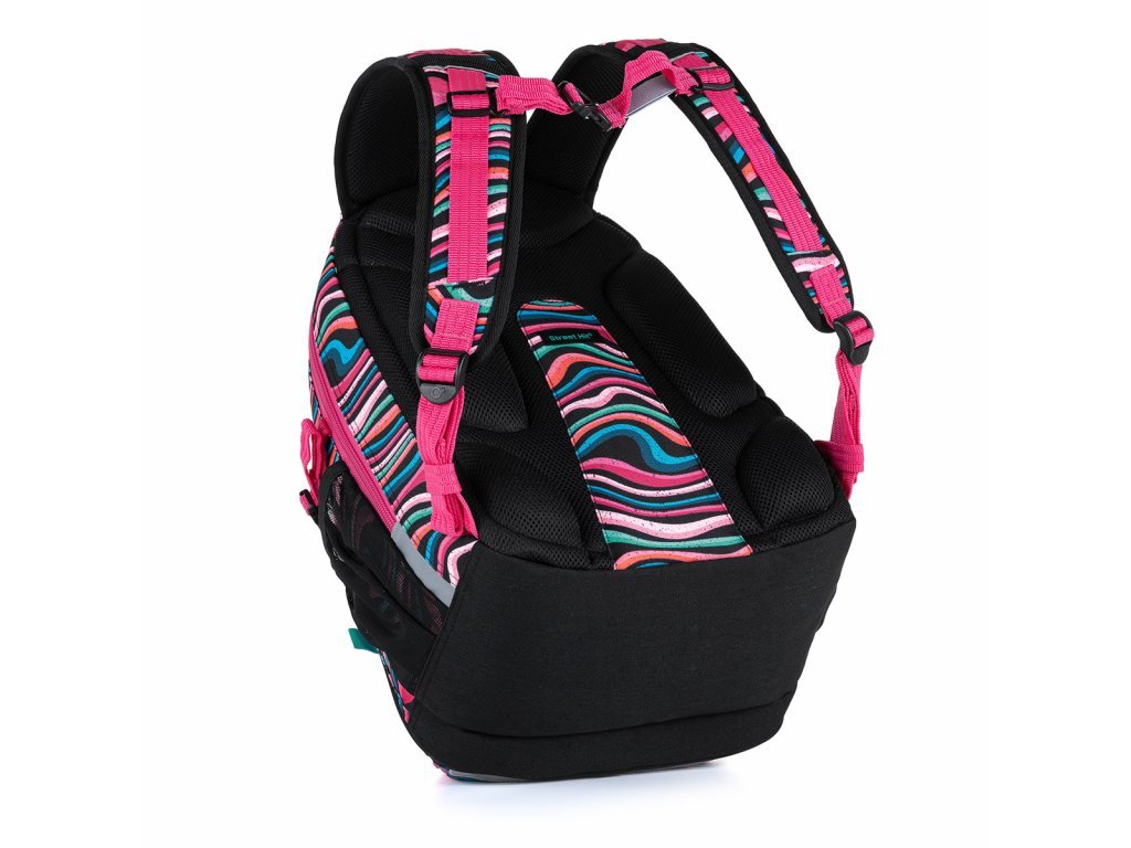 Nezabudli sme ani na pevný, anatomicky tvarovaný chrbát s tvarovanými polstrovanými popruhmi. Tie sa dajú, rovnako tak ako hrudný pásik, výškovo nastaviť, takže batoh porastie s vašou dcérou!