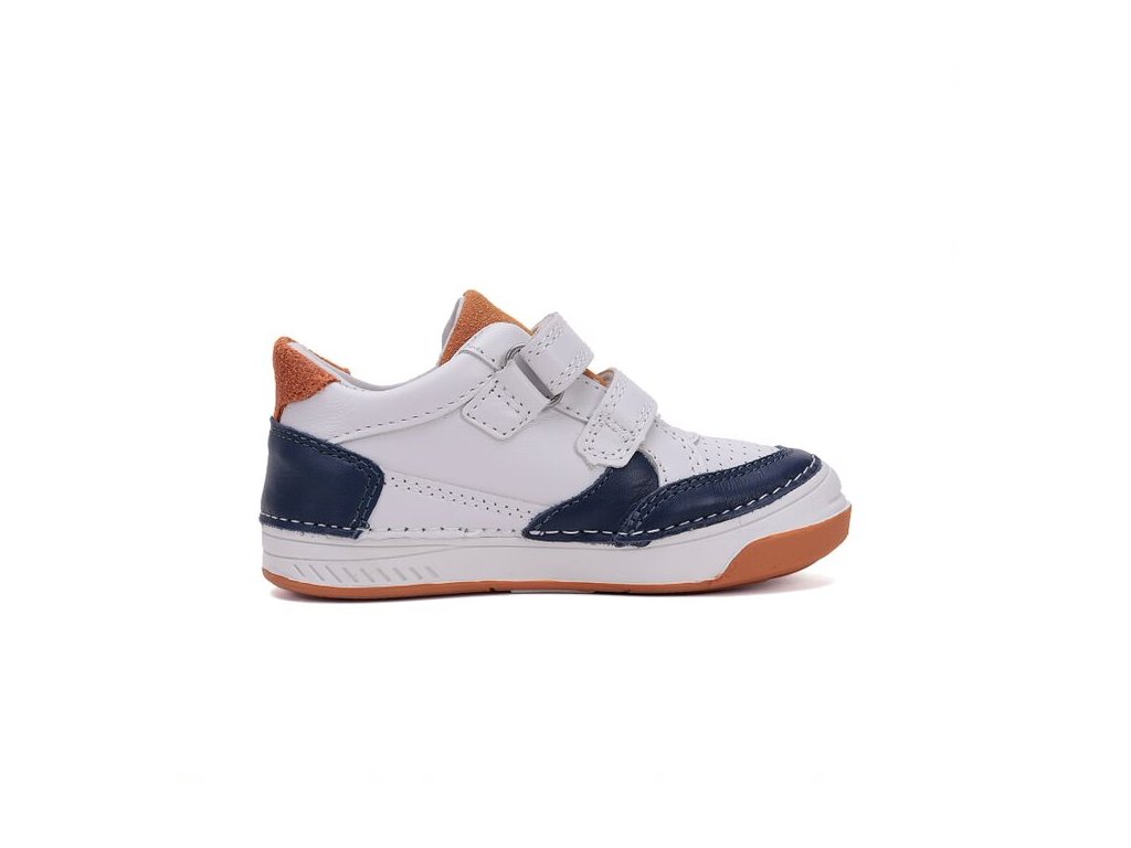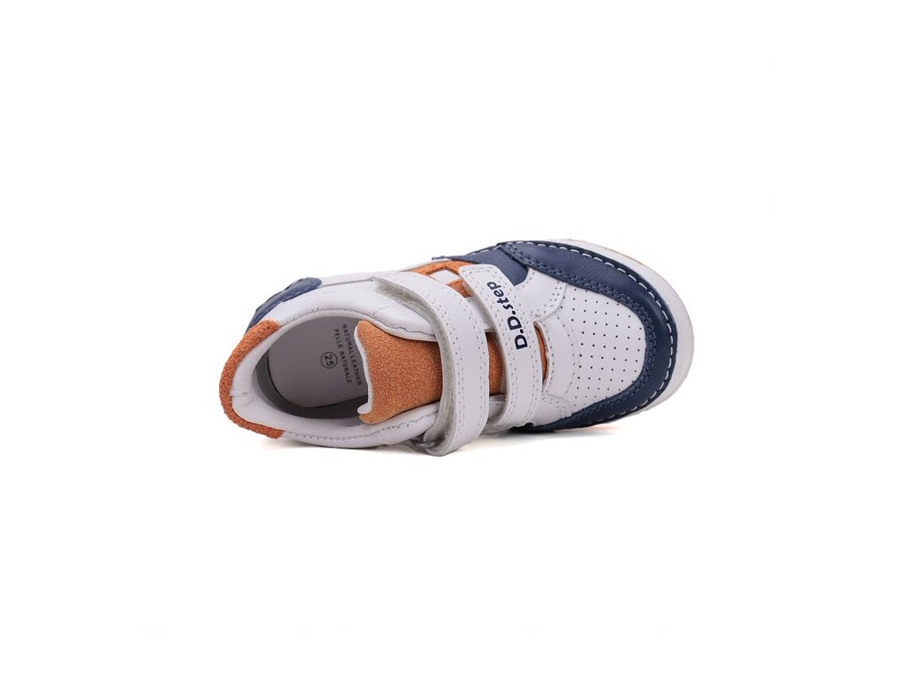 Kožená detská obuv, prechodné topánky značky D.D.STEP s ortopedickou vložkou a tvarovanou klenbou. Vložka je kožená a vyberateľná. Obuv je vhodná pre detičky, ktoré potrebujú pevnú pätu. Topánka má klasický strih, je na rokmi overenej podrážke typu 040 a vyrába sa vo veľkostiach 25 až 36. Zapínanie je na suchý zips. Vpredu je vyvýšená guma proti okopaniu.
