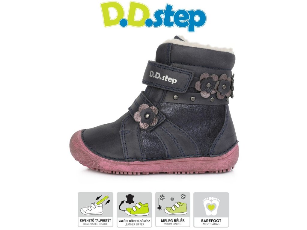 D.D.Step Zimné topánky 063 barefoot kvety - royal blue