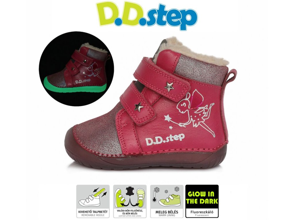 Kožené topánky D.D.Step sú vyrobené z kvalitnej jemnej kože, rada 070 patrí medzi topánky vhodné pre vyznávačov barefoot topánok. Tvar špičky si dovolíme povedať, že sa veľmi vydaril. K tomu podrážka z kvalitnej, mäkkej a ohybnej gumy s typickým vyvýšením v prstovej oblasti, ktoré pri drobcoch naozaj oceníte, keďže topánky nezostanú hneď okopané.